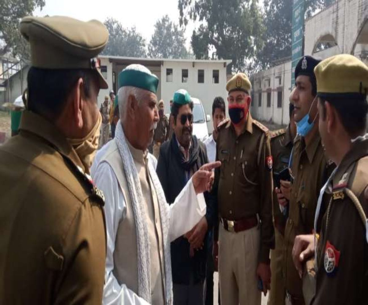 Uttar Pradesh: Members of Bharatiya Kisan Union stage 'Rail Roko' at Hapur during their nationwide protest against agriculture laws
