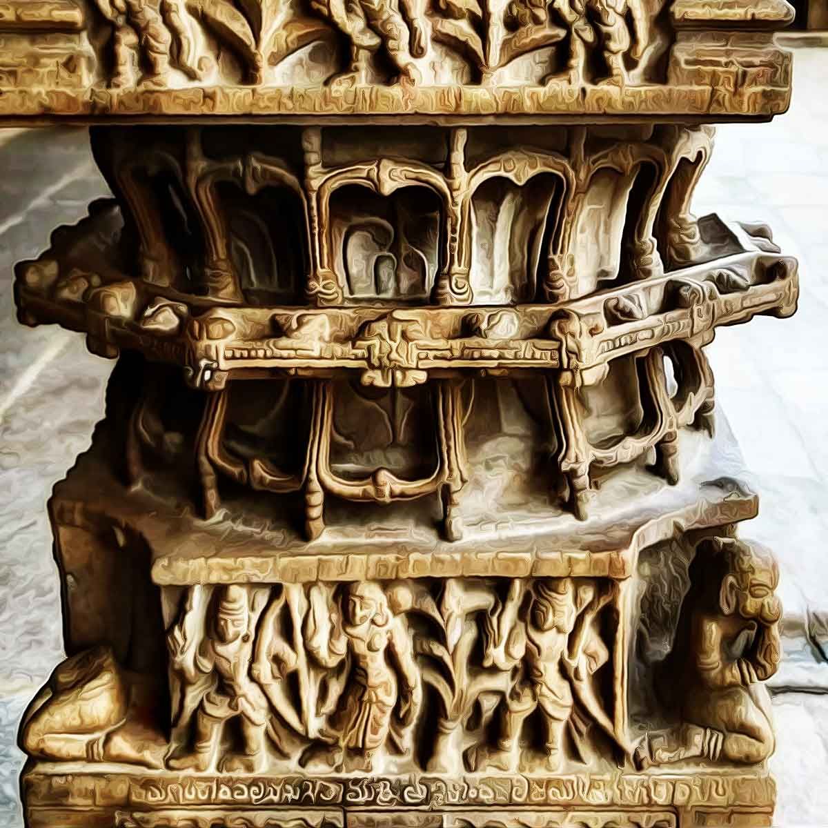 Inside the sanctified Garbhagriha, built with colossal stones, resides an imposing pedestal. This pedestal, adorned with intricately carved 32 seated female figures known as Shakti Peetha, occupies the heart of the temple